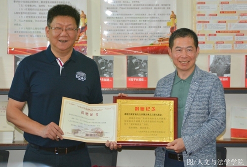 梁力新先生、张阳武秘书长、张晖书记和共同签署了“梁家勉基金”捐赠协议。咸春龙副校长为梁力新先生颁发捐赠荣誉牌匾和捐赠荣誉证书。