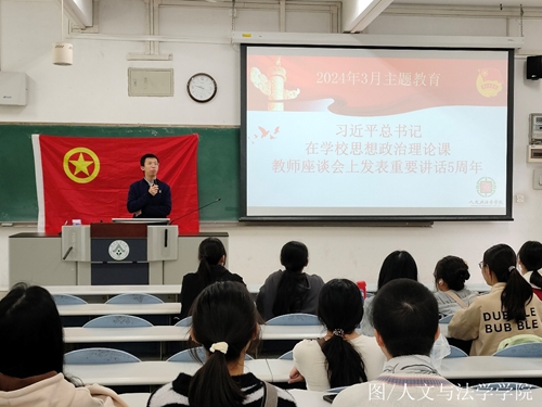 为巩固主题教育成果,建立健全以学铸魂、以学增智、以学正风、以学促干的长效机制,团委书记、法学系本科生第二党支部书记李玮舜老师于2024年3月20日为2023级汉语言文学1班本科生团支部讲授主题团课。