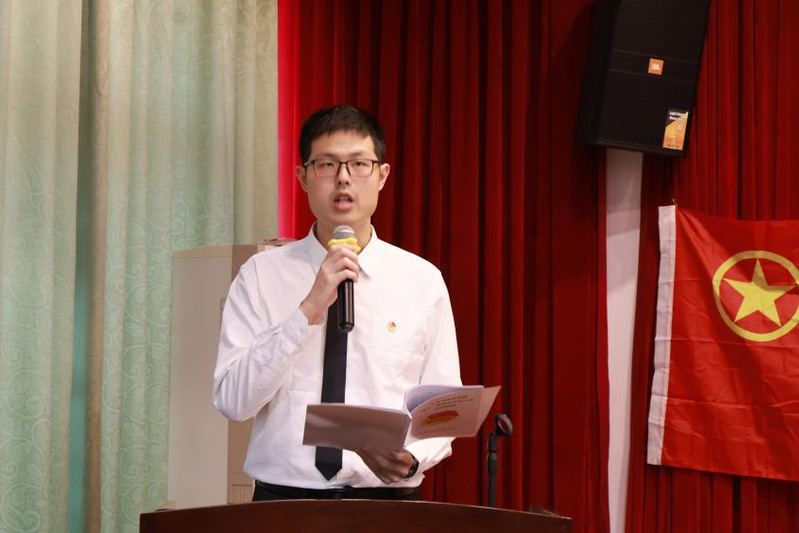 大会第三项,植物保护学院主席团成员李文贤上台发言。他表示过去一年,两院互帮互助、联动发展,并代表植保学院学生会衷心表达了未来将进一步加强两院学生会的友好合作,携手共进的美好愿景。