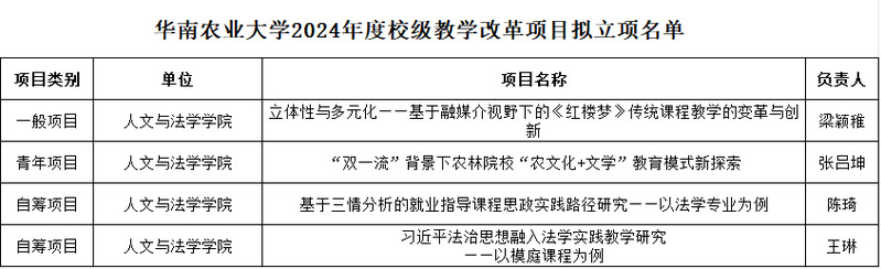 梁颖稚老师、张吕坤老师、陈琦老师、王琳老师获得suncitygroup太阳官方网站2024年度校级教学改革项目立项。