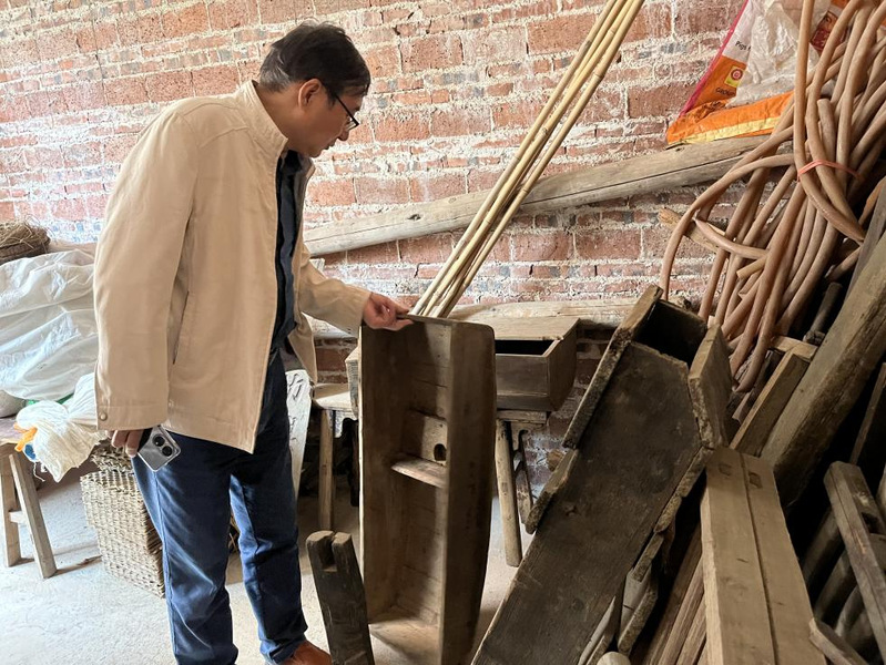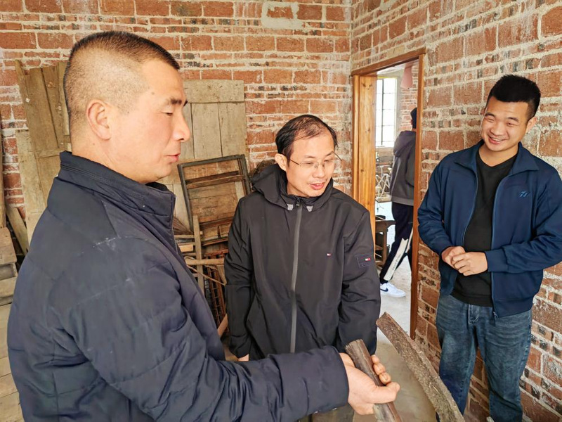 当日中午,考察团队驱车400公里来到广西贺州市平桂区新村寨村,寻找、采购岭南传统农具,助力三水农耕文化博览馆建设。考察团队受到莫一古玩店店主莫老板及其儿子莫浪先生的热情接待,农民出身的莫老板是一位古物爱好者,主要收集古建筑材料、旧农具和生活物件。倪教授、王教授在莫老板父子陪同下认真翻看两栋自建住宅中各层堆积的旧农具,勘察其破损状况,寻找需要的旧农具。同时与多年从事传统农具收藏的莫老板就店内古农具的名称、制作和在当地的使用功能等进行深入交流探讨,了解当地的传统农具收藏情况,并向研究生分析介绍当地传统农具的特色,最后采集了一些有代表性、有价值的传统农具。次日上午10点,采集团队又重返莫一古玩店,协助装车并补购十数件需要的传统农业生产工具。在本次采集中共采集40余类,总计90余件传统农具,为建设三水农耕文化博览馆农具陈列打下扎实基础。