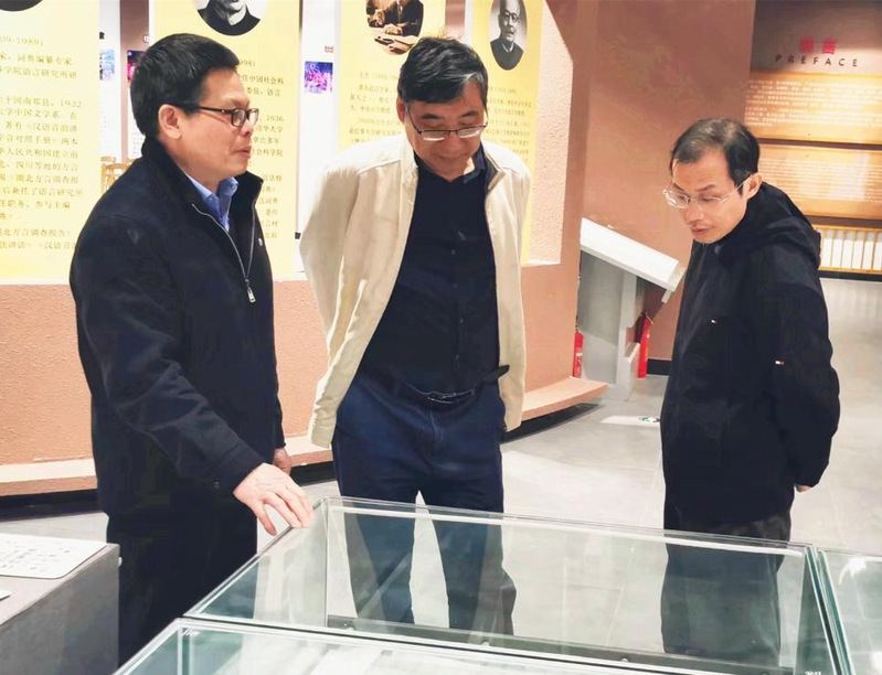 2月28日下午,考察团队抵达贺州八步区,先后参观贺州博物馆、贺州学院民族文化博物馆、贺州学院语言文化博物馆。在贺州博物馆,考察团队着重参观了贺州瑶族风情展、贺州汉魂展、贺州古碑展,对展出的汉、瑶传统农业生产工具进行仔细观摩,专门研讨,尤其是对颇具贺州地方特色的插秧船与其他地区插秧船进行了分析对比。在贺州学院民族文化博物馆受到语言博物馆罗老师的热情接待,并在他和博物馆志愿者的带领下,参观了族群文化、契约文书、矿冶钱币、长寿文化、牌匾文化、碑刻拓片、耙饼文化、南方傩文化等11个专题展厅。特别是在传统农具展前,大家饶有兴趣观看、研讨当地各式农具,其中竹麻制品和用于木薯加工的工具薯粉瓢漏、漏勺,大家还是首次见到。当随行研究生在科举牌匾上发现《植物名实图考》作者吴其濬的题名,欢欣鼓舞。考察中团队向陪同的当地师生了解一些农具的当地名称及功用,听取罗老师对中国地方特色方言的介绍,观看由学生制作的展示广西各地方言视频。整个考察内容丰富,特色鲜明,收获颇多。