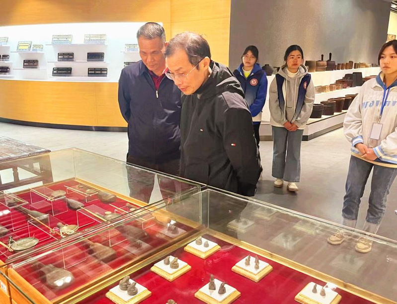 王教授观看古代度量衡展品