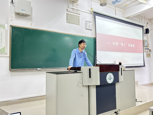 讲座伊始,肖教授首先结合自己的学术和生活经验,向历史学本科新生讲授所谓“做人”的道理,具体包括“与人方便,自己方便”“慎独”和“不偷东西”等,通过列举亲身经历的事例并引经据典,提醒同学们要有集体主义精神,独处时尤其要恪守道德准则,读书不能“走捷径”,要遵守学术规范,意在说明“做人”与“做学问”其实相通。