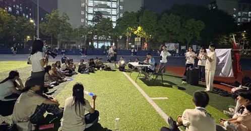 一轮明月,辉映家国同圆;一曲辞章,颂唱祖国华诞。9月29日晚,suncity太阳新城师生在启林南操场开展了一场别开生面的“辞颂华诞,月圆诗圆”诗词联句主题活动。师生们以诗为媒,以词抒怀,在传统文化与人文情怀的浸润中共同庆祝中秋与国庆的到来。活动由2025级年级管理委员会主办,学院辅导员丘沐梓老师和同学们共同参与。